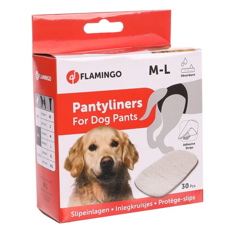 Ett högabsorberande, mjukt tikskyddsinlägg tillverkat av textilmaterial. Inlägget har en klisterremsa på baksidan så att den bättre sitter på plats.