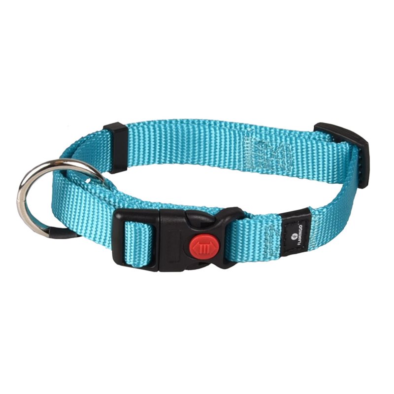Halsbandet Ziggi är inte bara snyggt utan också säkert tack vare säkerhetslåset. Tillverkat av nylon och utrustat med en praktisk ring för kopplet – perfekt för din trogna fyrbenta vän!
